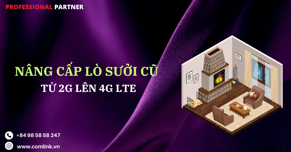Nâng cấp lò sưởi cũ là sử dụng Gateway 4G LTE làm cầu nối giữa hệ thống mạng 2G của lò sưởi với công nghệ mạng di động 4G để đảm bảo quản lý và giám sát ổn định.