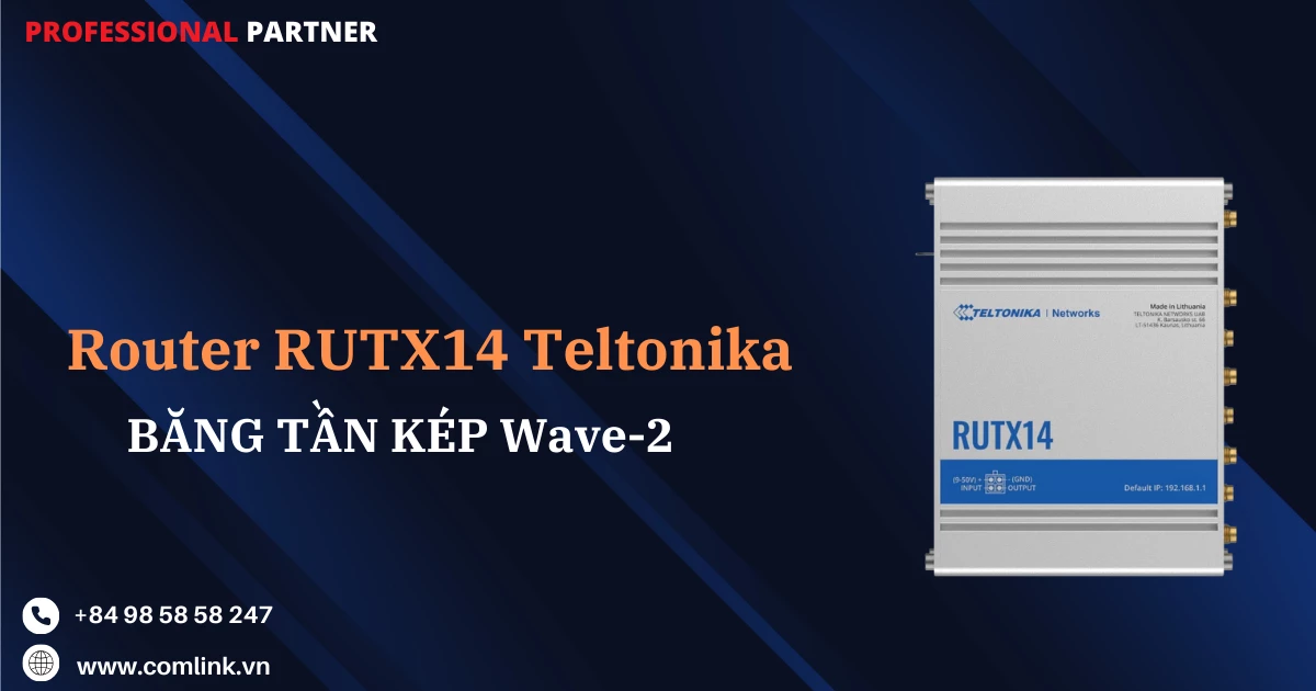 Router RUTX14 Teltonika được trang bị công nghệ Wifi băng tần kép Wave-2, mang đến sự linh hoạt và hiệu suất tuyệt vời trong kết nối không dây.