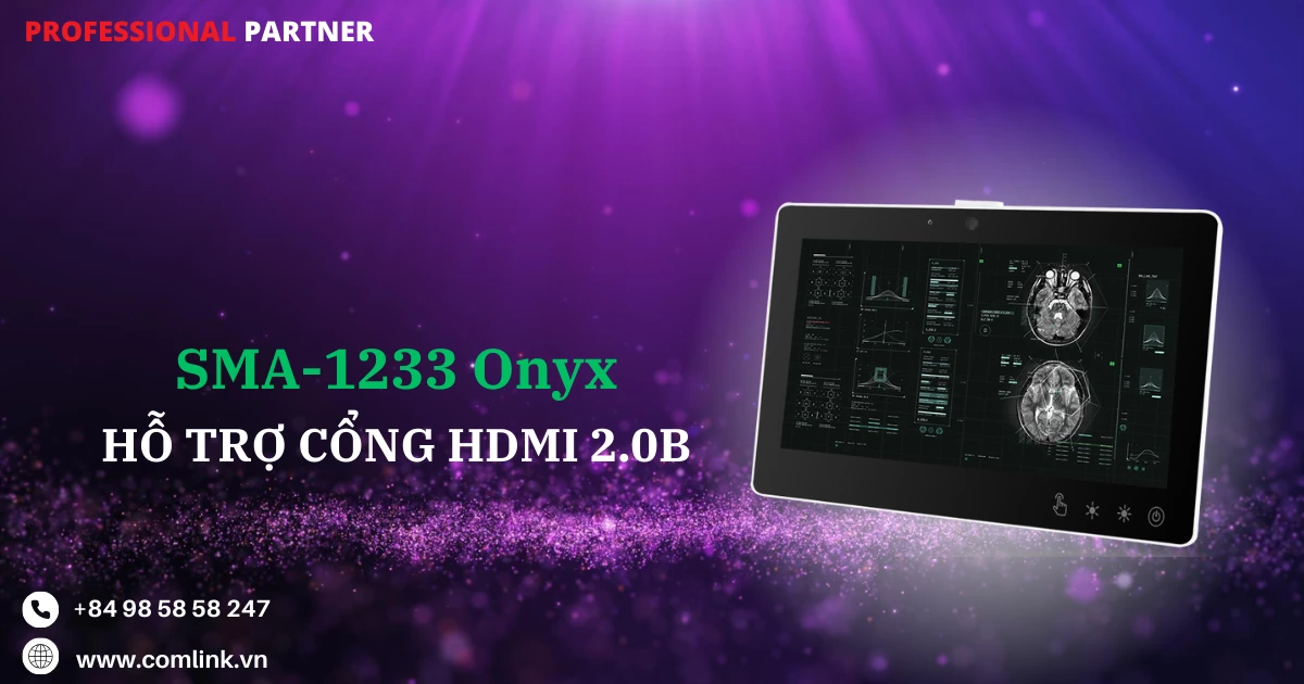- Cổng HDMI 2.0b trên SMA-1233 Onyx hỗ trợ cấu hình màn hình kép, mở rộng máy tính để bàn của họ qua hai màn hình để nâng cao tính linh hoạt và năng suất.