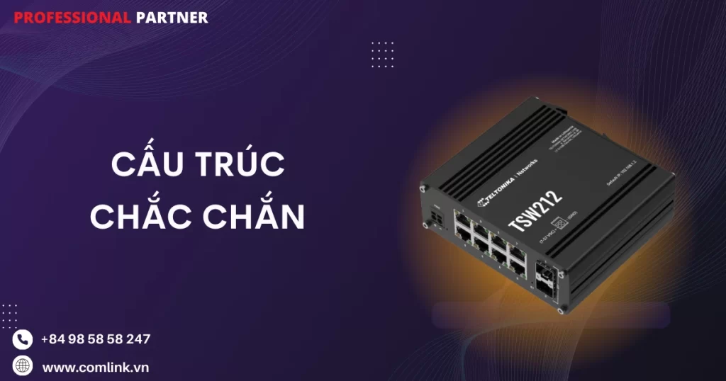 Cấu trúc chắc chắn của Switch TSW212 Teltonika đóng vai trò quan trọng trong việc đảm bảo độ tin cậy và tuổi thọ của thiết bị trong môi trường công nghiệp đầy thách thức.